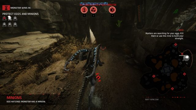 A jak wygląda kwestia zróżnicowania po stronie bestii? Tu niestety jeszcze gorzej. Choć samo kontrolowanie ogromnego potwora daje sporo frajdy, bez względu na to w jakim trybie akurat gramy, nasze zadanie sprowadza się do jednego – ukrywamy się przez kilka pierwszych minut, ewoluujemy w ostateczną formę i rzucamy się na łowców. Początkowo jest to naprawdę emocjonujące, zwłaszcza że nawet nie będąc w pobliżu polujących czujemy się jak ścigana zwierzyna, ale już po kilku rozgrywkach miałem nieodparte wrażenie, że widziałem absolutnie wszystko co gra po stronie bestii ma do zaoferowania. Fakt, każde z trzech monstrów udostępnia odrobinę inny typ poruszania się i zwodzenia myśliwych, ale wszystko i tak sprowadza się do jednego – mamy się „napchać” lokalną zwierzyną i uważać, aby nie zostawiać śladów. Przy „niszczeniu jaj” lub „ratowaniu kolonistów” ten ostatni czynnik możemy nawet sobie darować, bowiem łowcy i tak zazwyczaj całkowicie ignorują bestię, zajęci innymi czynnościami.