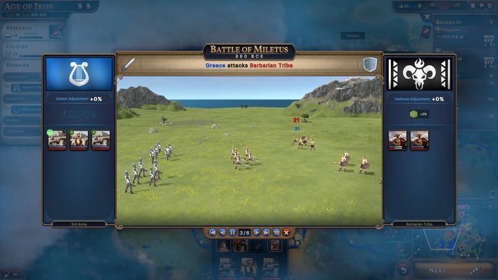 Gołym okiem widać, że ktoś tu po prostu stracił kontrolę nad grą, która w trakcie produkcji rozrosła się do monstrualnych rozmiarów z masą niepotrzebnych mechanik, a te w dodatku nie działają tak, jak powinny. Jednocześnie deweloperzy zapomnieli o tych, które wydają się wręcz fundamentem gatunku. Żadnego znaczenia nie mają tutaj chociażby nacje, jakimi gramy. Każdy kraj niby ma domyślnie przypisany konkretny (i bardzo marginalny) bonus, lecz nic nie stoi na przeszkodzie, by po prostu wybrać inny. Do dyspozycji oddano nam więc 18 nacji, ale konsekwencje wyboru konkretnej z nich są raptem dwie – zmienia się flaga przy naszych miastach oraz wizualny styl osad. Co prawda w grze pojawiają się „ikoniczne” jednostki, jak na przykład hoplici, lecz dostęp do nich otrzymujemy w ramach czysto losowej inspiracji, czyli bonusu przyznawanego w zamian za stabilny rozwój.