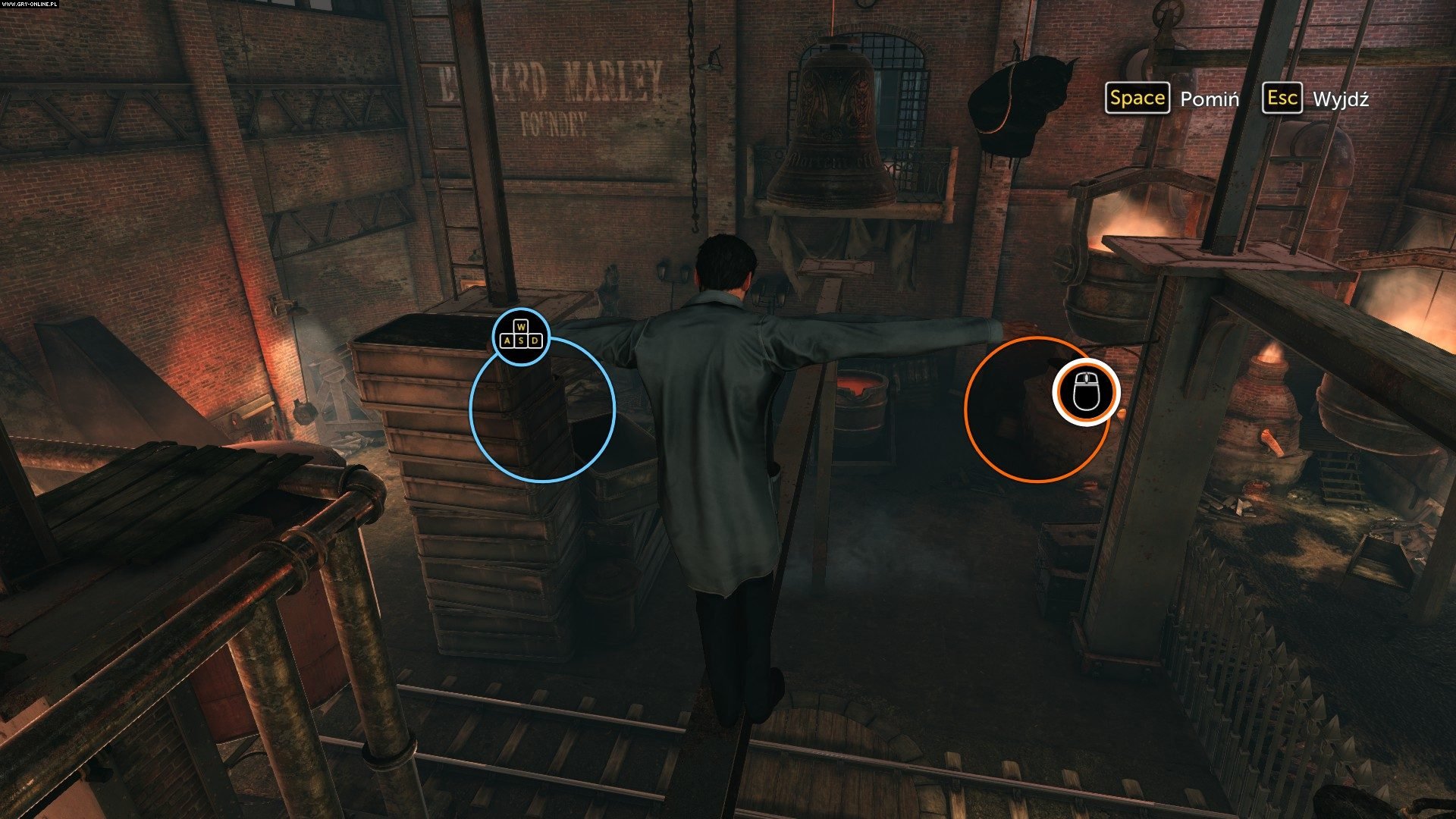 Nowy i odmłodzony Holmes biega, skacze niczym Lara Croft w jednej z sekwencji w piramidzie, w dramatycznym pościgu na wrzosowiskach i bagnach ucieka przed próbującymi go zastrzelić napastnikami, a także wysługuje się nastolatkami, którzy niczym jeden z ubisoftowych asasynów śmigają po dachach, próbując nie zgubić śledzonego obiektu, czy przeciskają się przez zadymione i pełne sadzy kominy. Detektyw ery wiktoriańskiej uparcie kojarzył mi się z Jasonem Bourne’em, choć oczywiście to zbyt dalekie porównanie – w końcu dżentelmenowi z XIX wieku nie wypada rozdawać kopniaków na prawo i lewo. W grze obecne są nawet fragmenty skradankowe, jednak nie stanowią one wielkiego wyzwania. Podobnie zresztą, jak i reszta elementów zręcznościowych, w tym quick time eventy, których na dobrą sprawę... mogłoby nie być, a sama rozgrywka by przez to prawdopodobnie w żaden sposób nie ucierpiała. Przydatne jest natomiast przełączanie się pomiędzy postaciami, bowiem zdarzają się typowo środowiskowe zagadki z przyciskami i wajchami, w trakcie których obecność partnera okazuje się niezbędna.