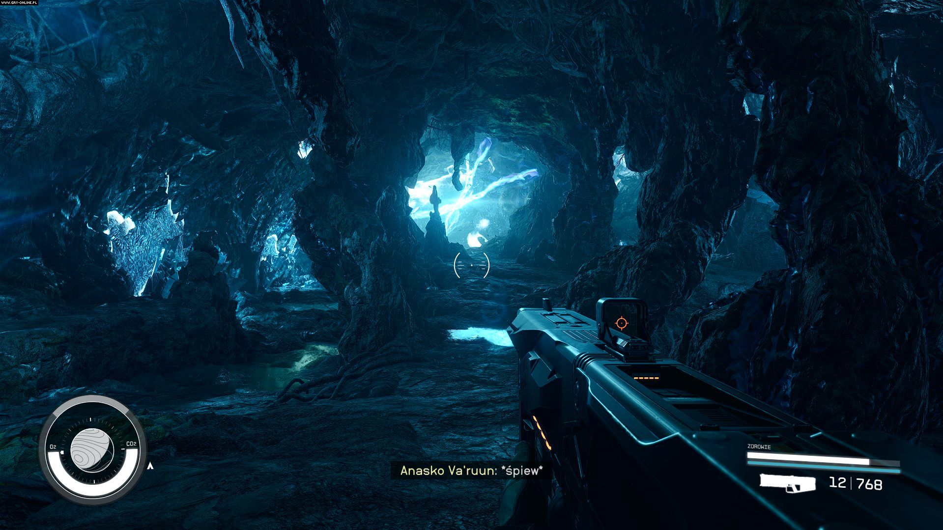 DLC uruchamia się prosto: gdy udajemy się do dowolnego, wybranego przez nas układu, nagle przechwytujemy transmisję wzywająca o pomoc. Gra uprzejmie informuje nas, że wypadałoby być co najmniej na poziomie 35 oraz że naszym kolejnym celem jest Procjon A, a konkretniej stacja kosmiczna Wyrocznia. Poza tym faktem początek jest bardzo „starfieldowy”. Wchodząc na pokład stacji, zaczynamy odczuwać lekki niepokój - DLC całkiem nieźle w wielu miejscach buduje napięcie muzyką oraz efektami dźwiękowymi. Dodatek był w końcu reklamowany jako horror, ale jako osoba nieprzepadająca za horrorami jakoś szczególnie tego nie odczułem. Poza tajemniczym „wirem” (tak nazywa się ta niebieska obca breja widoczna na screenshotach) oraz dryfującymi przezroczystymi ludźmi (upiory wiru), przypominającymi Doktora Manhattana z Watchmenów, jest to w większości po prostu kolejna stacja kosmiczna ze Starfielda. I już tutaj zacząłem mieć wątpliwości, a w mojej głowie zaśpiewała Agnieszka Chylińska – „czy warto było kupować tak, za pełną cenę?”.