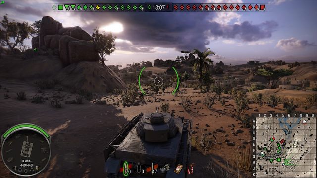 Jeśli mowa o prostocie, to trzeba też wspomnieć o artylerii. Wydaje się, że ta zmora wielu graczy zyskała na konsolach – mniej precyzyjne sterowanie najmocniej dotknęło pojazdy szybkie, które w starciach powinny objeżdżać przeciwnika, kąsając znienacka i znikając zaraz za zasłoną. Trudniej w nich, np. strzelając do jednego wroga i objeżdżając drugiego, obserwować jednocześnie sytuację wokół. Artylerię z kolei obsługuje się bardzo przyjemnie – można wręcz zażartować, że pad właśnie do tego został stworzony. Pozostaje mieć nadzieję, że wraz z rozwojem wersji na PlayStation 4 nie pojawi się problem obecny swego czasu w pecetowej odsłonie – wielu graczy pamięta jeszcze czasy, gdy mecz z pięcioma „artami” po obu stronach nie należał do rzadkości.