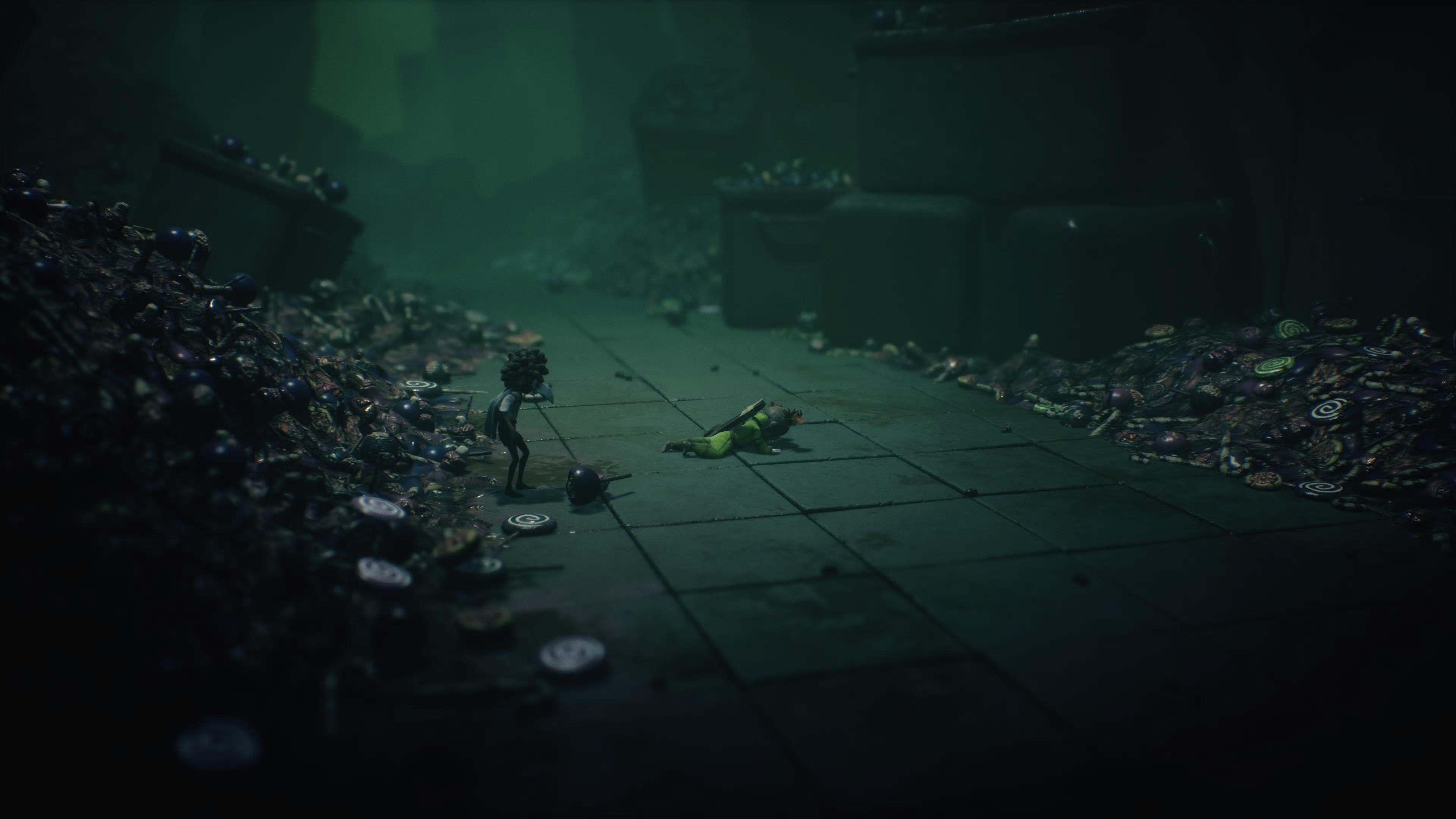 Takich momentów, gdy na ekranie pojawia się bardzo dużo obiektów, jest w LN3 mało i najczęściej niewiele możemy z tymi obiektami zrobić.Little Nightmares III, Bandai Namco Entertainment, 2025.