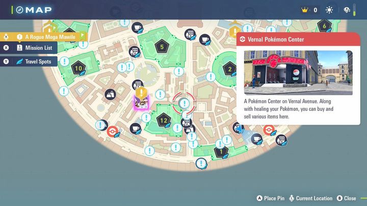 Z-A ma dość klasyczny model mapy z porozrzucanymi znacznikami ułatwiającymi nawigację pomiędzy zadaniami.Pokemon Legends: Z-A, Nintendo, 2025.