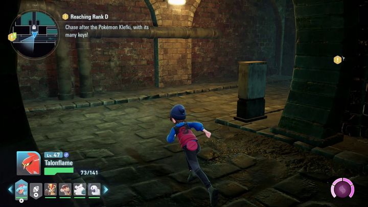 Marny obraz miasta boli tym bardziej, że w grze naprawdę nie brakuje ładnych elementów. Wspomniane wcześniej ekspresyjne modele postaci wyglądają lepiej niż kiedykolwiek w serii. To samo dotyczy ślicznie animowanych pokemonów. Niektóre bardziej kameralne zakątki stolicy prezentują się naprawdę klimatycznie, a odwiedzane co jakiś czas zamknięte pomieszczenia wydają się zaprojektowane bardzo szczegółowo. Legends Z-A w mikroskali potrafi wyglądać dobrze. Problem pojawia się, gdy zmniejszymy nieco zoom i spojrzymy na plan ogólny.