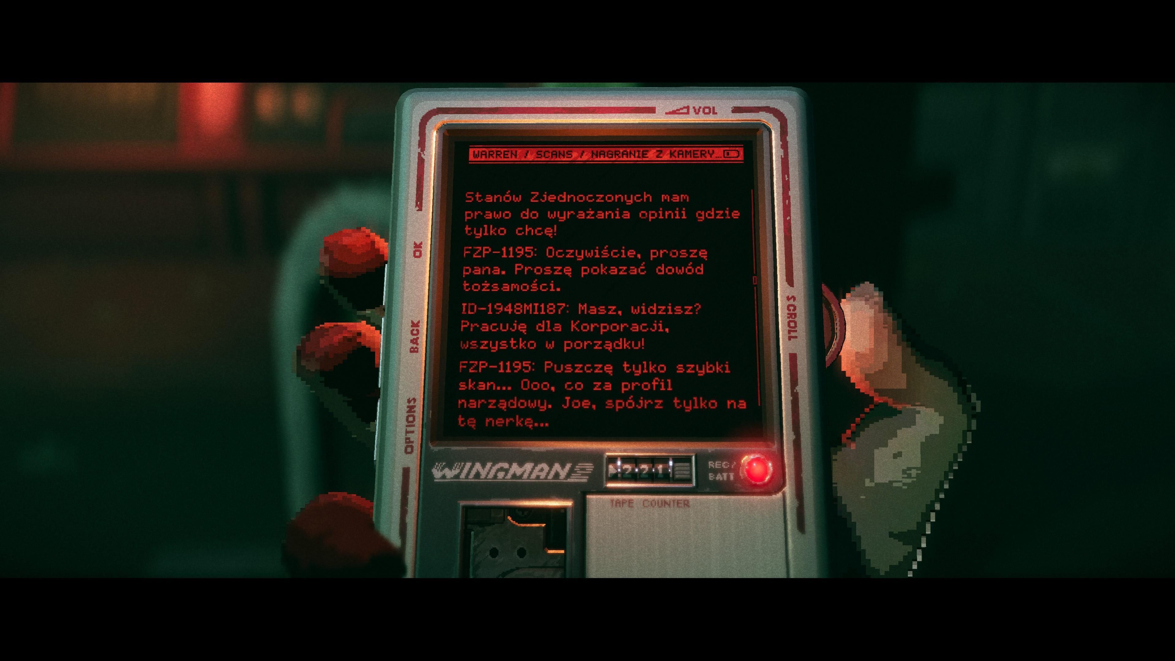 Jeśli kogoś razi pixelartowa czcionka, może zmienić ją w opcjach na „normalną”. Na screenie: problematyka świata Replaced w pigułce.Replaced, Sad Cat Studios / Thunderful Publishing, 2026.
