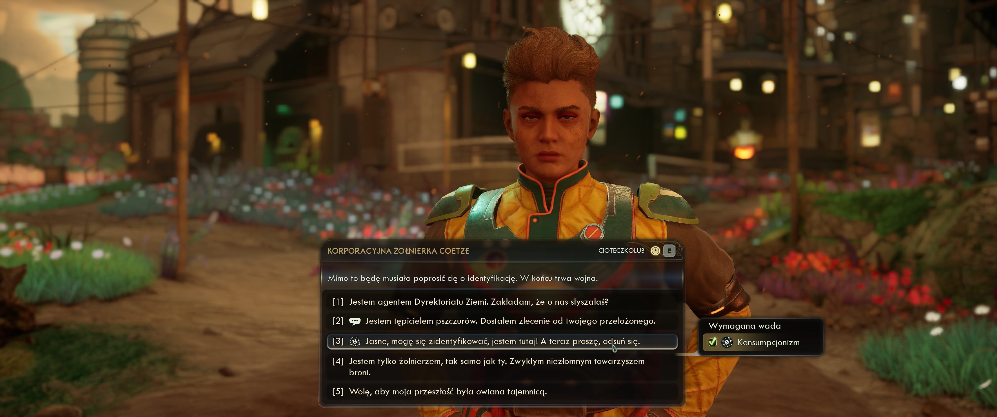 Znajomość pierwszej części serii nie jest w żaden sposób wymagana – sequel rozgrywa się w kompletnie innym systemie gwiezdnym oddalonym o lata świetlne, a o wydarzeniach z „jedynki” nie pada nawet wzmianka. Fabuła The Outer Worlds 2 to czysta pulpa sci-fi. Już poprzednia część lawirowała nieco zbyt blisko ciągłego absurdu, choć okazjonalnie balansowała go nieco mroczniejszymi, zapadającymi w pamięć wydarzeniami, takimi jak los statku Nadzieja oraz porażki Phineasa Wellesa. Próżno tego szukać w The Outer Worlds 2 – szala przechyliła się niemal całkowicie w kierunku pulpy, a najbardziej świadczą o tym frakcje oraz wątki towarzyszy. Żadnej z frakcji operujących na terenie Utopii nie da się wziąć na poważnie, ponieważ wszystkie są do bólu przesadzone i opierają się na pojedynczych cechach wspólnych niemal wszystkim jej członkom, więc żadna nie sprawia wrażenia autentycznej i trudno polubić którąkolwiek z nich. Protektorat to skrajna dystopia wymagająca równie skrajnego perfekcjonizmu od swoich obywateli. Najmniejsze przewinienia karane są mentalnym odświeżeniem, czyli chemiczną lobotomią, zaś sam naród jawnie szczyci się istnieniem tejże procedury oraz nielimitowaną swobodą działania jego sił policyjnych. Cioteczkolub jest niewiele lepszy, będąc skrajnie stereotypową megakorporacją bez żadnych zmartwień oprócz pieniądza, gdzie robotnicy pracują po dwadzieścia godzin dziennie i muszą od własnego pracodawcy kupować stymulanty trzymające ich na nogach. Zakon Ascendenta to zarówno najciekawsza, jak i obiektywnie najlepsza moralnie z frakcji – stowarzyszenie naukowców zdolnych do przewidywania przyszłości poprzez matematykę, dążący do rozwiązania uniwersalnego równania napędzającego Wszechświat, tym samym prowadząc ludzkość do raju. Jest to przyzwoity i unikatowy koncept, zaś sama frakcja jako jedyna pomaga cywilom z samej chęci pomocy. Niestety jej członkowie przypłacają to byciem niesamowicie irytującymi. Rozmowa z każdym członkiem Zakonu jest jak czyściec lub czytanie dyskusji na Reddicie – niemal każdy Ascendent choć raz powie Ci, że przez Twoją obecność jego dzień jest o 1.3% lepszy lub że bliskie spotkanie ze śmiercią pogorszyło jego stan mentalny o 41.356%, wywyższając się swoim niewyobrażalnym intelektem.