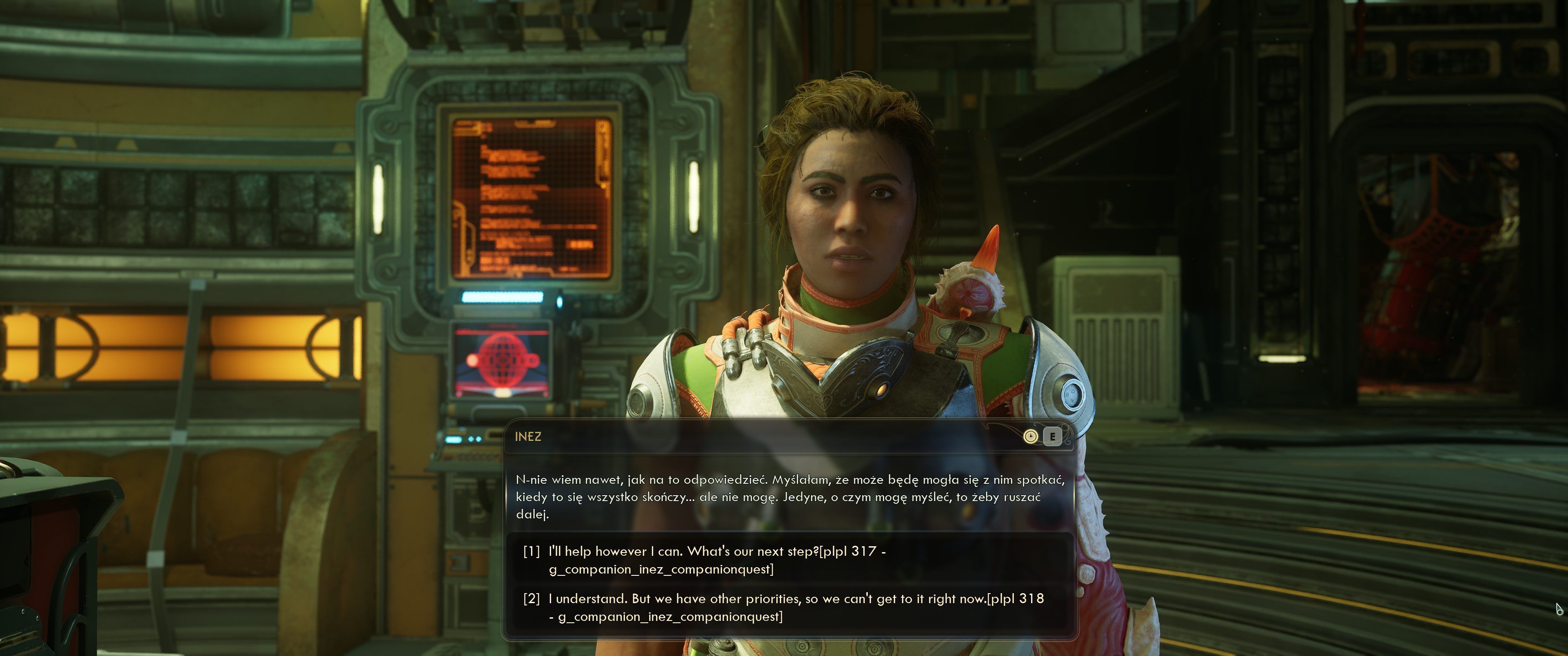 Wątki towarzyszy również cierpią na powiązaniu z frakcjami. Towarzyszy jest sześciu, choć tylko pięcioro z nich posiada pełnoprawne wątki (jednym z towarzyszy jest maszyna bojowa bez jakiegokolwiek arcu). Nie jest to raczej zbieg okoliczności, że to dwójka towarzyszy niepowiązanych z głównymi frakcjami ma najlepsze wątki w grze. Niles to młody agent Dyrektoratu Ziemi rozdarty między poczuciem obowiązku, a świadomością bycia wykorzystywanym przez przełożonych. Aza natomiast to kultystka z ciągotami do morderstw, zmuszona do ponownego przemyślenia swojego światopoglądu po nagłym konflikcie z resztą kultu. Oboje posiadają przyzwoite zadania osobiste, choć nie są one nawet blisko czołówki gatunku. Wątek Marisol, zabójczyni z Zakonu Ascendenta dotyczący zniszczenia potencjalnie niebezpiecznych badań jej byłej przyjaciółki jest umiarkowanie ciekawy, lecz dwa pozostałe wątki opierają się na potwierdzeniu czegoś, co dla gracza jest dobitnie oczywiste od samego początku. Inez, żołnierka Cioteczkoluba po eksperymentalnej terapii przeszczepowej musi nauczyć się, że zatrudniającej ją korporacji tak naprawdę na niej nie zależy – po tym, jak wykorzystali ją do ryzykownych eksperymentów i porzucili na pastwę losu, gdy przestała być opłacalna. Tristan natomiast jest stróżem prawa Protektoratu różniącym się od innych tym, że preferuje on przeprowadzić jakiekolwiek śledztwo przed dokonaniem egzekucji. Jego wątek rozwiązania sprawy morderstwa swojej mentorki ujawnia mu przerażającą prawdę – system sprawiedliwości opierający się na kompletnej samowolce stróżów prawa nie działa. Choć oba te wątki brzmią równie absurdalnie co frakcje, z jakimi są powiązane, gra traktuje je zaskakująco poważnie, co kompletnie nie pasuje ani do ich zawartości, ani do ogólnego tonu.