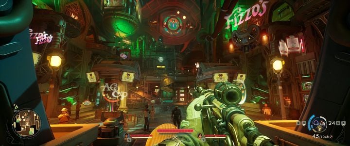 No dobrze, ale jak się w to gra? Wyobraźcie sobie Fallout New Vegas... i to w sumie tyle, teraz wiecie już, jak gra się w The Outer Worlds 2. To tylko na pozór dowcip – pod względem rozgrywki gra jest złudniczo podobna do New Vegas, a główną różnicą jest tym razem funkcjonujący po ludzku silnik. Na szczęście bardzo lubię New Vegas. Strzelanie jest bardzo podobne, walka wręcz jest dokładnie taka sama, a główną różnicą jest obecność gadżetów zamiast systemu VATS. Dzielą one pasek energii, a po aktywacji dają potężne efekty, takie jak spowolnienie czasu lub osłona absorbująca obrażenia. System ekwipunku również przypomina ten zawarty w New Vegas. Broń i odzież nie ma już poziomów tak jak w pierwszej części serii, a zamiast tego jest podzielona na kilka rodzajów, z których to każdy ma oddzielne tiery. Dowolny ciężki rewolwer zawsze zadaje zatem więcej obrażeń niż lekki rewolwer. Nie musicie więc obawiać się potrzeby latania za fioletowym czy pomarańczowym wyposażeniem dającym mikroskopijne bonusy do obrażeń od strzałów w kolano zadanych w czwartki. Kolor oznacza jedynie stan modyfikacji wyposażenia, które sami również możecie tworzyć i przyczepiać – szare wyposażenie jest niezmodyfikowane, a zielone ma przyczepioną powszechną modyfikację. Z tłumu zwłaszcza wyróżnia się ekwipunek złoty i niebieski – złoty oznacza przyczepioną unikatową modyfikację o niepowtarzalnych efektach, której nie można samemu wyprodukować, zaś niebieski oznacza eksperymentalny przedmiot działający kompletnie inaczej od reszty waszego arsenału. Unikatowe przedmioty pozwalają na sporą ekspresję w rozgrywce – znajdziemy tu np. płaszcz na bieżąco wydający pieniądze by blokować otrzymywane obrażenia, pancerz stworzony z jeszcze żyjącej ludzkiej skóry automatycznie atakującej pobliskich wrogów, granatnik strzelający mięsem, które można podnieść z ziemi i zjeść w celach leczniczych lub karabin o nieskończonym magazynku, który przy każdym pociągnięciu za spust strzela innym, losowo wybranym rodzajem amunicji. Różnorodność i kreatywność dostępnego ekwipunku dźwiga na barkach dość przestarzały system walki.
