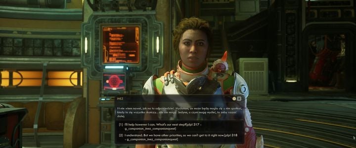 Pod względem optymalizacji jest przyzwoicie – tytuł ogrywałem na komputerze z procesorem Ryzen 5700X3D, kartą graficzną RTX 5070 i 32 GB RAM. Odpalony na ustawieniach wysokich tytuł działał w płynnych 60 klatkach, choć zdarzyło mu się chrupnąć kilka razy na kilka sekund w bardziej intensywnych momentach. Występowały też problemy ze skryptami, głównie przy towarzyszach – raz rozmowa z Inez blisko początku gry nagle wywołała konwersację dotyczącą końcówki jej zadania osobistego, do którego dotarłem dopiero kilkanaście godzin później. Gdy towarzysze mają Wam coś do powiedzenia, nad ich głową widnieje ikonka dymku z tekstem – w przypadku dwójki towarzyszy dymki te utknęły nad nimi permanentnie i nie było sposobu na ich usunięcie. Podczas finału gry natomiast miałem poważny problem z ukończeniem jednego celu pobocznego – cel ten nie chciał się aktywować, chyba że wszedłem w obszar zadania w bardzo specyficzny sposób, tj. zeskakując z pobliskiego rusztowania pod odpowiednim kątem. Ponownie podczas ostatniego zadania we framudze drzwi stanął przede mną sojuszniczy dron. Nie mogłem przejść pod nim, obok niego, nie można było go zniszczyć – zablokował jedyne wyjście z pomieszczenia, co zmusiło mnie do wczytania wcześniejszego zapisu.