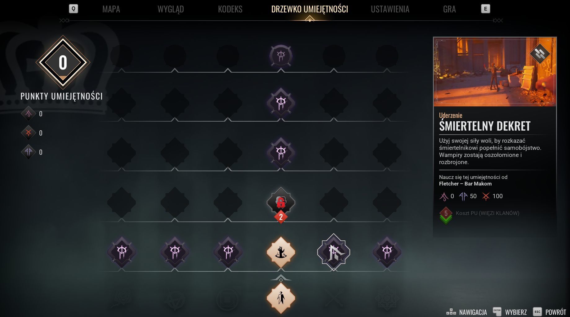 O ile jednak świat Maskarady przedstawiony został w grze bardzo dobrze, o tyle mam zastrzeżenia co do decyzji związanych z UI/UX. Menu wygląda bardzo nijako, layout jest niewygodny i brakuje w nim istotnych zakładek. Dodatkowo liczba dostępnych punktów krwi została wyróżniona tym samym kolorem co reszta menu, czyli niebieskim. Mała rzecz, ale naprawdę spodziewałem się tam czerwieni.