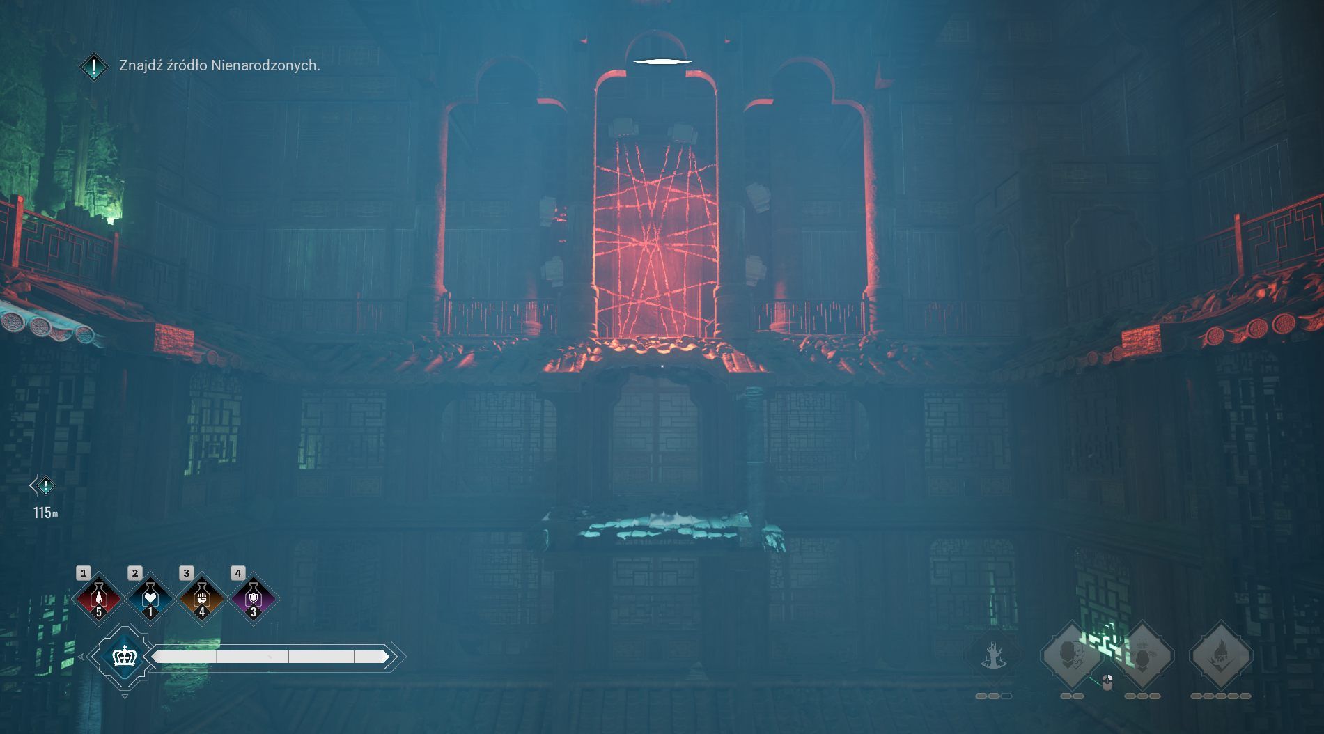 Skradanie się stanowi ważną część rozgrywki, czy to podczas polowania, ucieczki, czy też walki – często, zamiast frontalnie atakować wrogów, lepiej przejść obok lub zacząć akcję, strategicznie wybierając cele. AI przeciwników pozwala na wiele pomyłek, mamy też wygodny feedback poziomu zauważenia Phyre przez patrolujących nieprzyjaciół. Znowu – system jest funkcjonalny, potrafi zapewnić satysfakcję, ale też gra wielokrotnie nie pozwala wyjść z lokacji w ukryciu i bez walki. Są momenty, gdy np. przeciwnicy pilnują drzwi, udaje się nam ich usunąć, robiąc hałas w oddali, gdy jednak podchodzimy do niebronionych już drzwi, nie możemy ich otworzyć, gdyż „wrogowie są w pobliżu”. Phyre nie bawi się w otwieranie kłódek po cichu, po prostu rozrywa je na kawałki, co może te sytuacje tłumaczyć. Jednak przez to poczucie wymuszania na graczu walki jest silne, zwłaszcza gdy ta na początku zabawy okazuje się mało satysfakcjonująca.