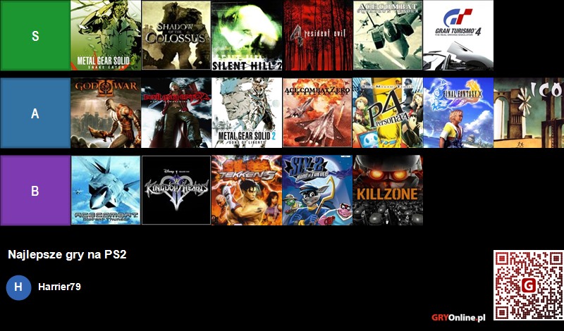 Lista najlepszych gier na wybitną konsolę Sony. S (wybitne) do B (solidne).
