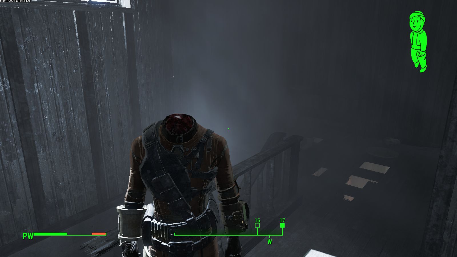 Mianowicie ten cudowny glicz spowodował zniknięcie huda podczas rozgrywki, wspaniale teraz podchodząc do postaci czy starając się podnieść przedmiot nie wyświetlało się nic, rozmowy z postaciami też opierały się na widzeniu swoich odpowiedzi, aczkolwiek nie wiedziałem nawet z kim rozmawiam ile mam hp, naboi itd.