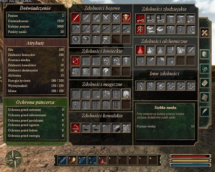 Rojo ---> Dla każdej umiejętności walki bronią masz 10 poziomów - każdy z nich daje coś innego. To po pierwsze. Po drugie czary nie są w osobnych umiejętnościach, tylko w runach. To co Tobie wydaje się, że to czary, to kryształy magii, których obsługi można nauczyć się w trakcie gry. Po trzecie, pewne rzeczy rozwiązane są inaczej. Dajesz za przykład Gothic 3, w którym np. trzy umiejętności poświęcone są oprawianiu zwierząt. W Risen jest taka umiejętność tylko jedna, ale żeby zdobywać niektóre trofea (np. skrzydła) musisz mieć w ekwipunku odpowiednie przedmioty.