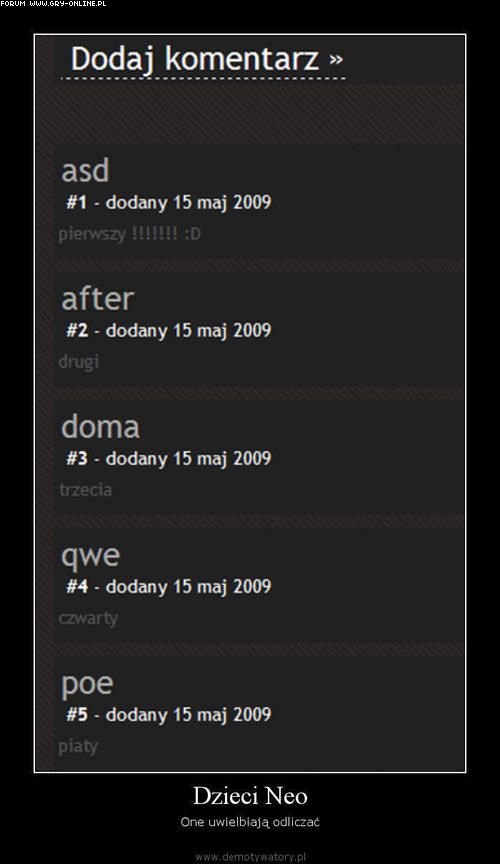Mam prośbe do adminów, żeby dawać bany na komentarze np. 1-2 tyg dla tych którzy piszą niepotrzebne i denerwujące posty jak pierwszy(wiem złudna nadzieja, że się oduczą :P)