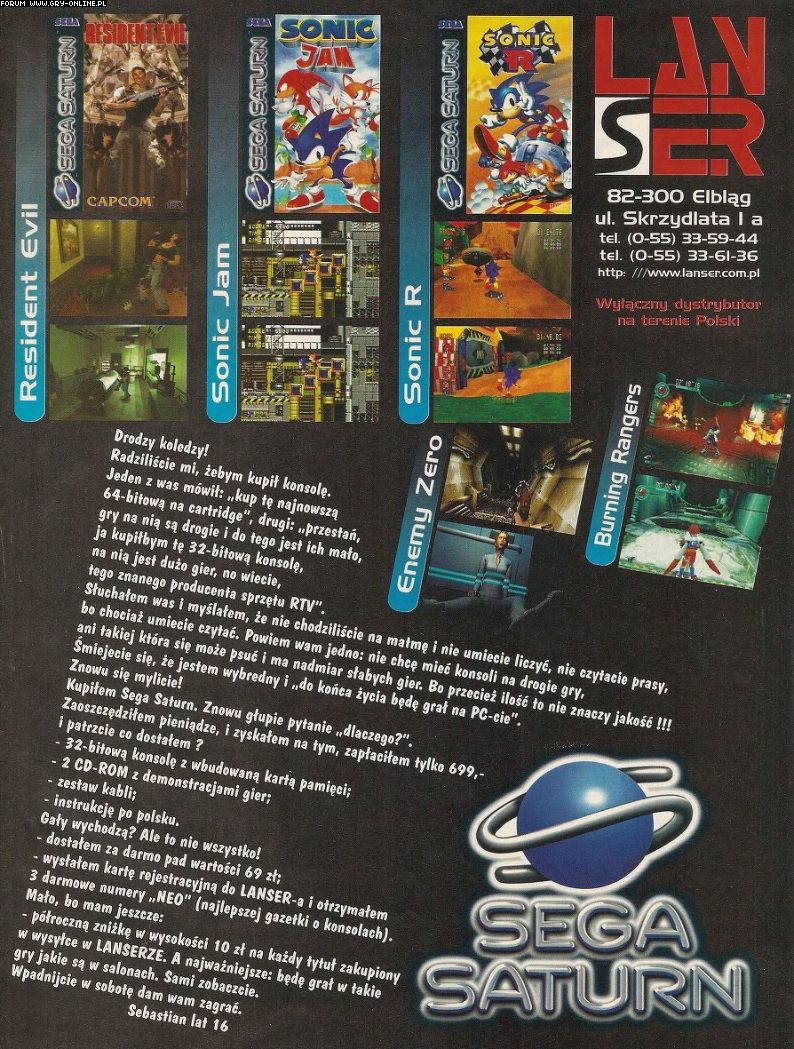 Taki tam polski akcent "wojny konsol", reklama chyba z 1996 roku :) Dwa lata później dostałem na szczęście playstation, ale tę agresywną kampanię pamiętam do dziś.