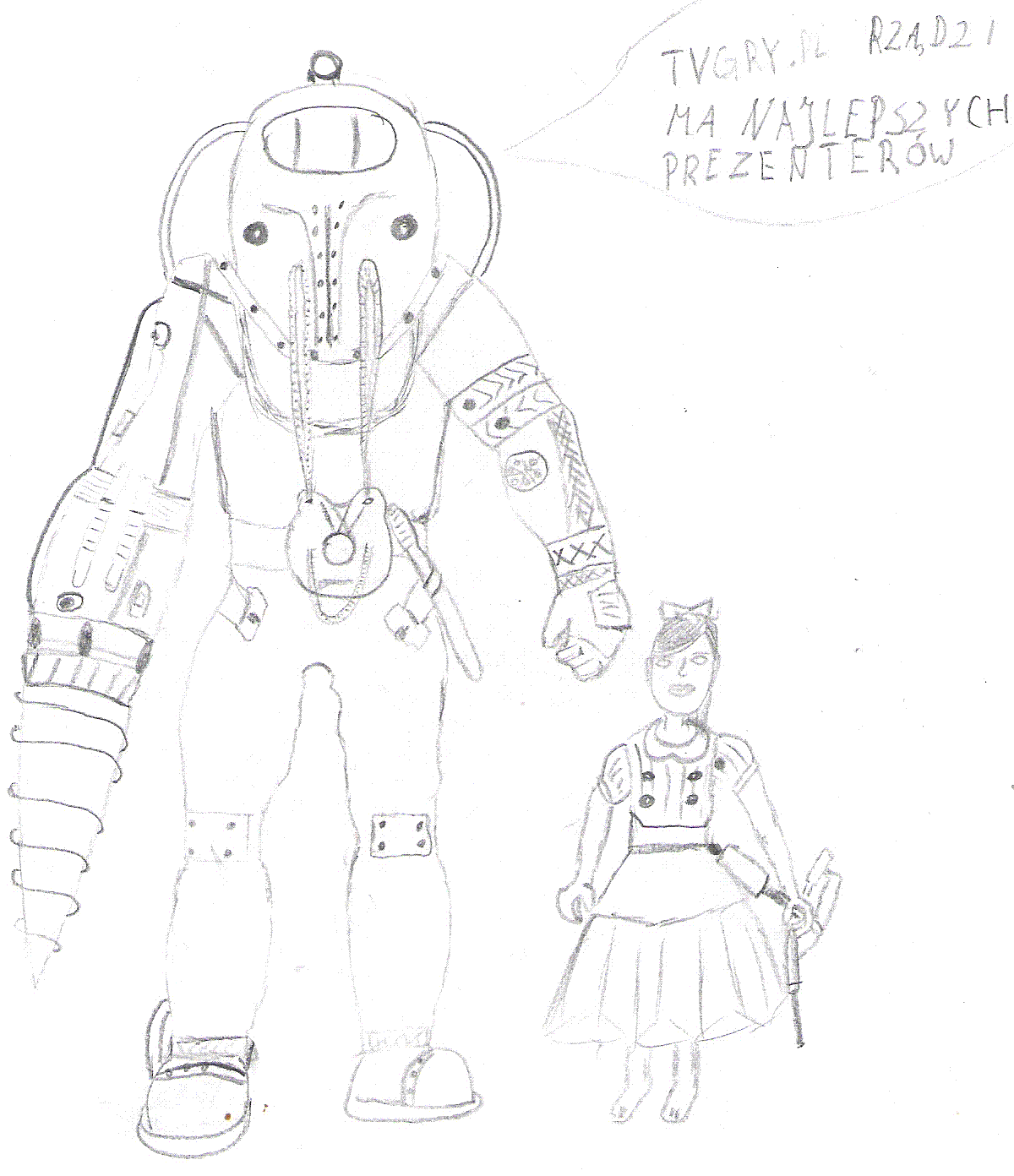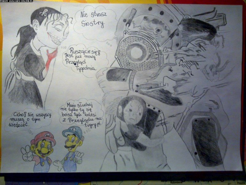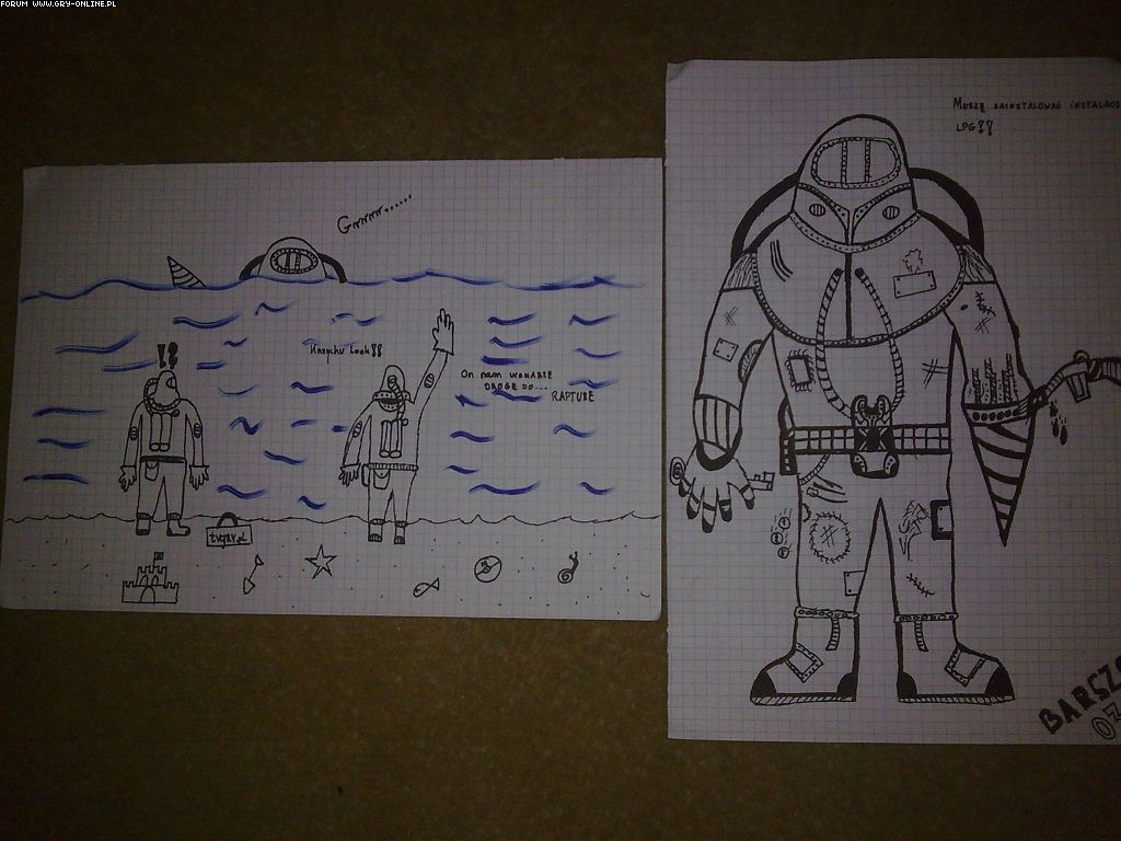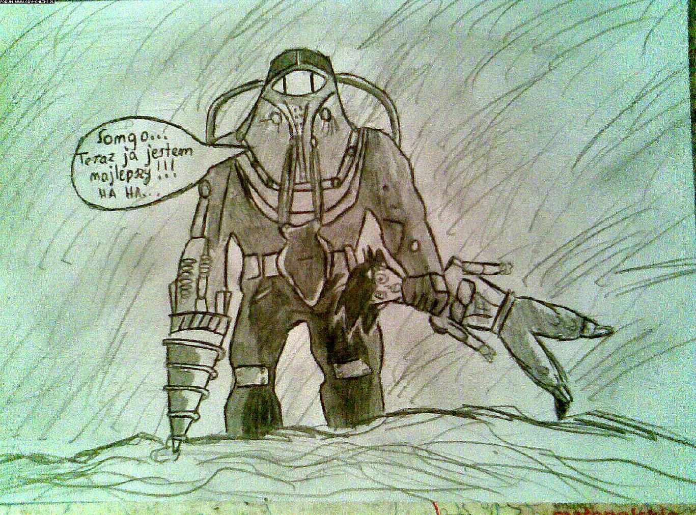 kwiatekbrn twoje trzecie dzieło może i sam rysowałeś ale pomysł nie jest twój bo wszystko żeś zrysował ( kalkować ) z tąd : http://raxdakkar.files.wordpress.com/2008/04/bioshock.jpg