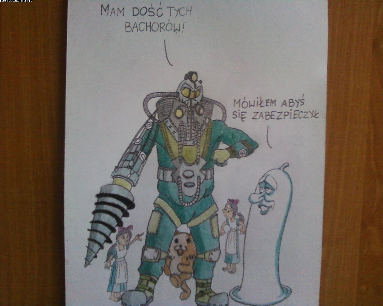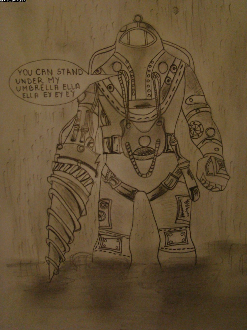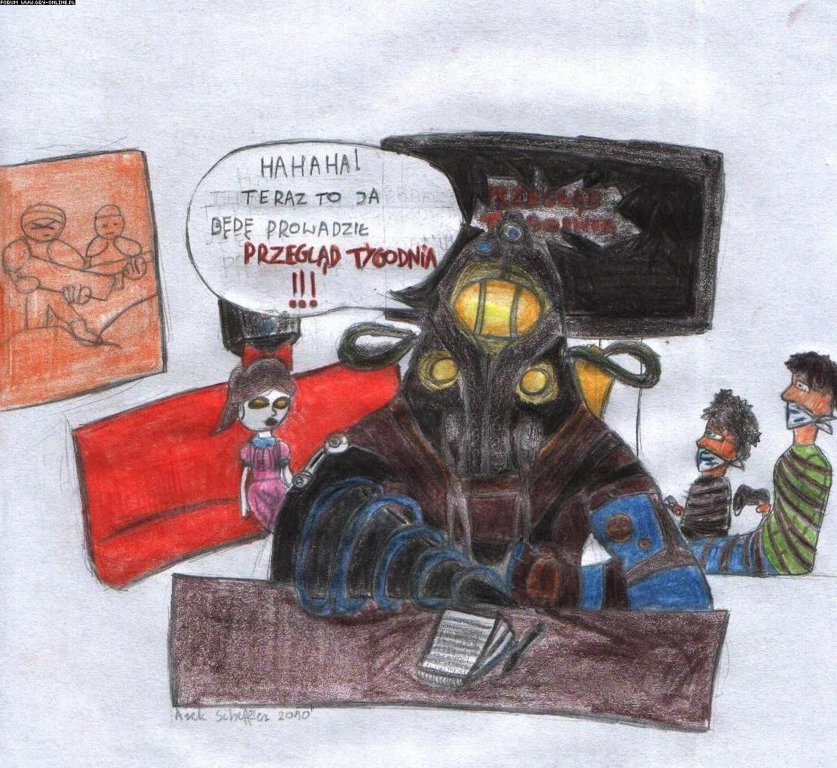 kwiatekbrn twoje trzecie dzieło może i sam rysowałeś ale pomysł nie jest twój bo wszystko żeś zrysował ( kalkować ) z tąd : http://raxdakkar.files.wordpress.com/2008/04/bioshock.jpg
