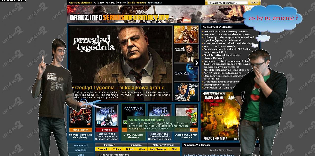 " Już dziś zamów na portalu gry-online ich nową produkcie. Gra mieści się jedynie na jednej dyskietce a w niej dwie grywalne postacie, dwie odmienne kampanie zależne od wyboru postaci. Pamiętaj i ty możesz stworzyć swój przegląd tygodnia. Gra przeznaczona dla osób powyżej 15 roku życie i dostępna jedynie na gry-online.pl"