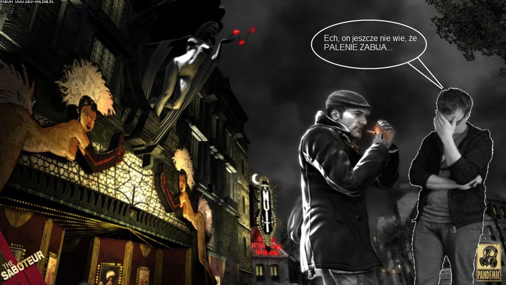 Jak zawsze odcinek dobry ;) fajnie że wspomnieliście o Q3. Plusy Sabotura to napewno że postać jest irlandczykiem i też się zgodze że gdyby gra byla w całości w czerni i bieli by miła swój swoisty klimat (nie wspominając o niedociągnieciach graficznych które są widoczne podczas gdy jest już kolorowo xD)