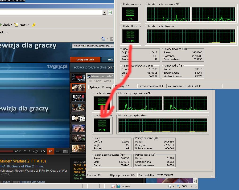 Nie mam problemu z kosmicznym użyciem RAMu, jak ktoś wyżej, ale u mnie podczas oglądania użycie procesora wynosiło 100% (przed odpaleniem Przeglądu 0-5%).