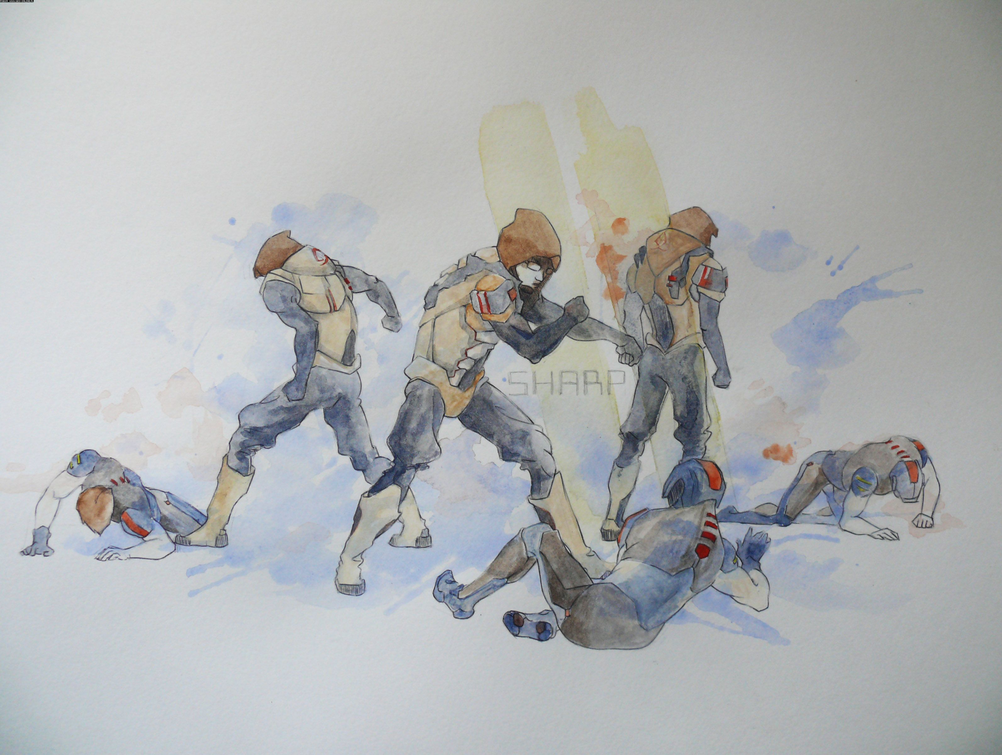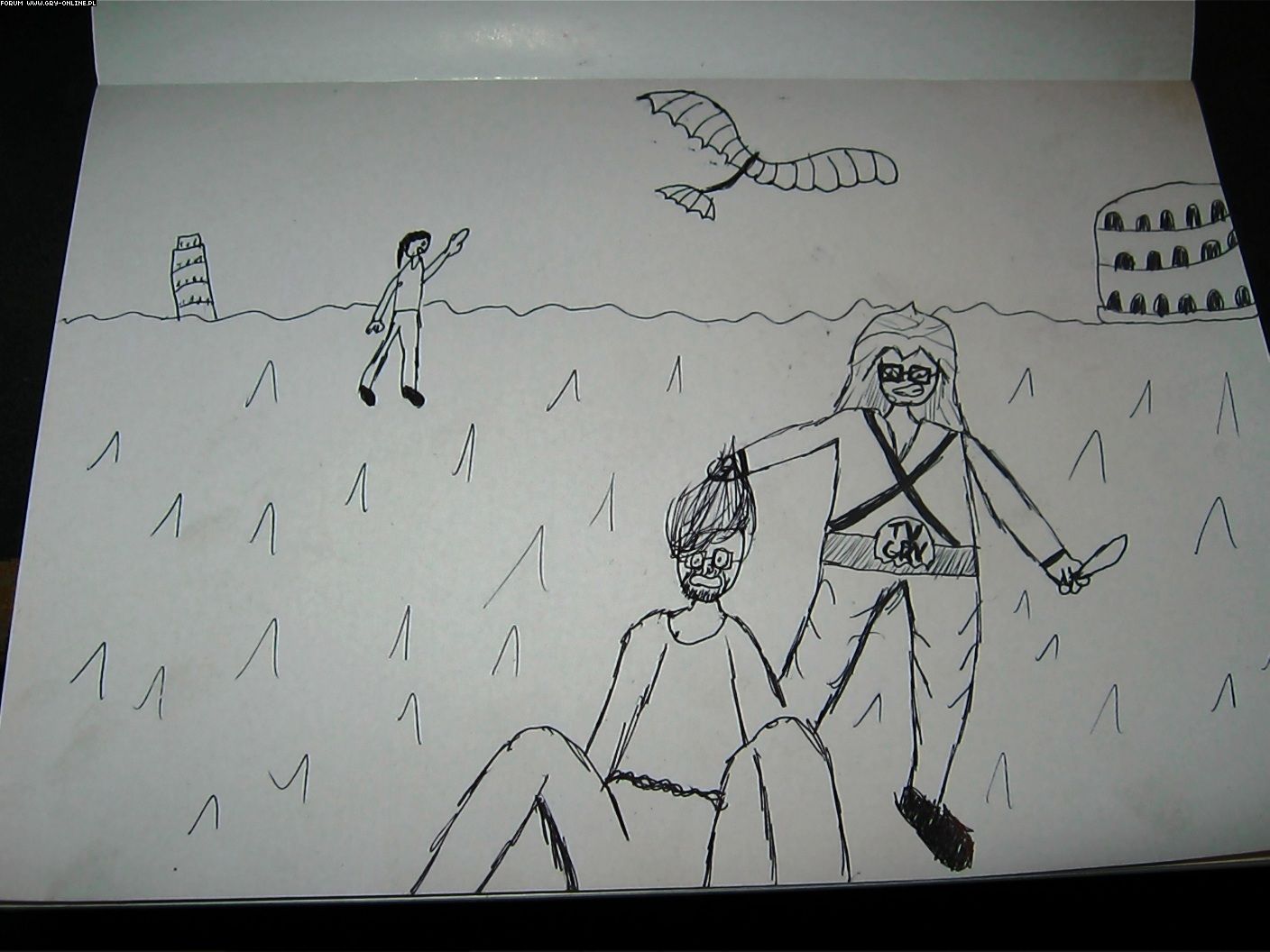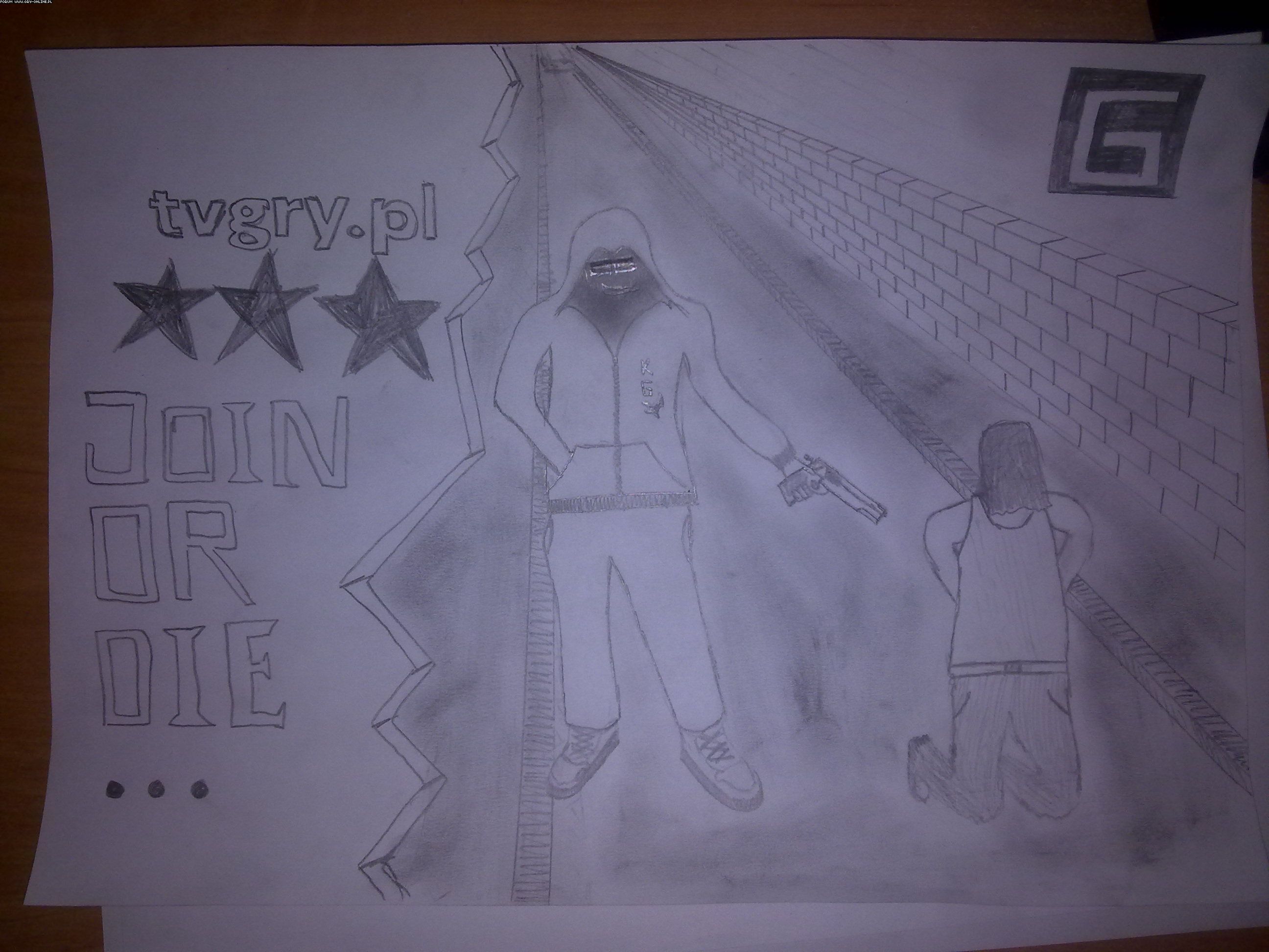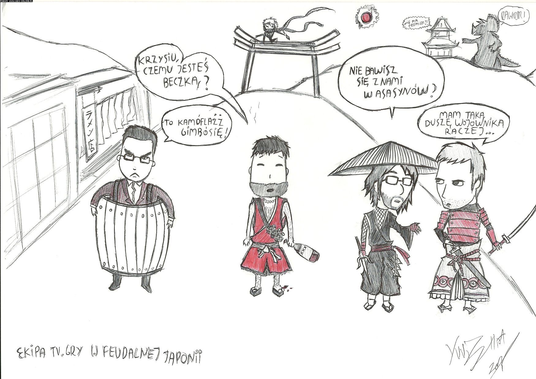 Człowiek się stara a potem :( Fajnie mi wyszło i wgl. a potem musiałem wszystko zepsuć dlatego,że skaner nie odczytywał narysowanego ołówkiem.A tak się starałem bo bardzo chciałem wygrać ten zestaw (bo spoko jest i przydało by mi się coś takiego fajnego) i chciałem poprawić pastelem i się zrypało ,ale wstawiam i zostawiam do waszej oceny.Mieli to być assassyni przyszłości a co najmniej teraźniejszości tzn. zamiast mieczy czy sztyletów mają kontrolery PS3 a Krzysiek trzyma w ręku fona.Szkoda ,że się tak stało ,że moja praca jest zniszczona.Narysował bym coś lepszego ,ale do środy nie będę miał neta a nie wiem do kiedy trwa konkurs.