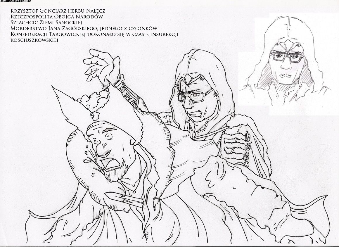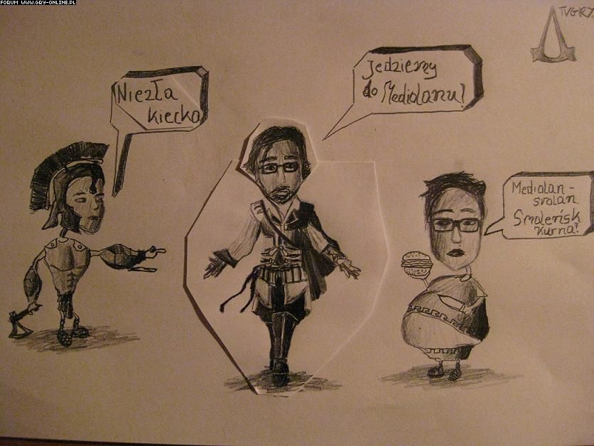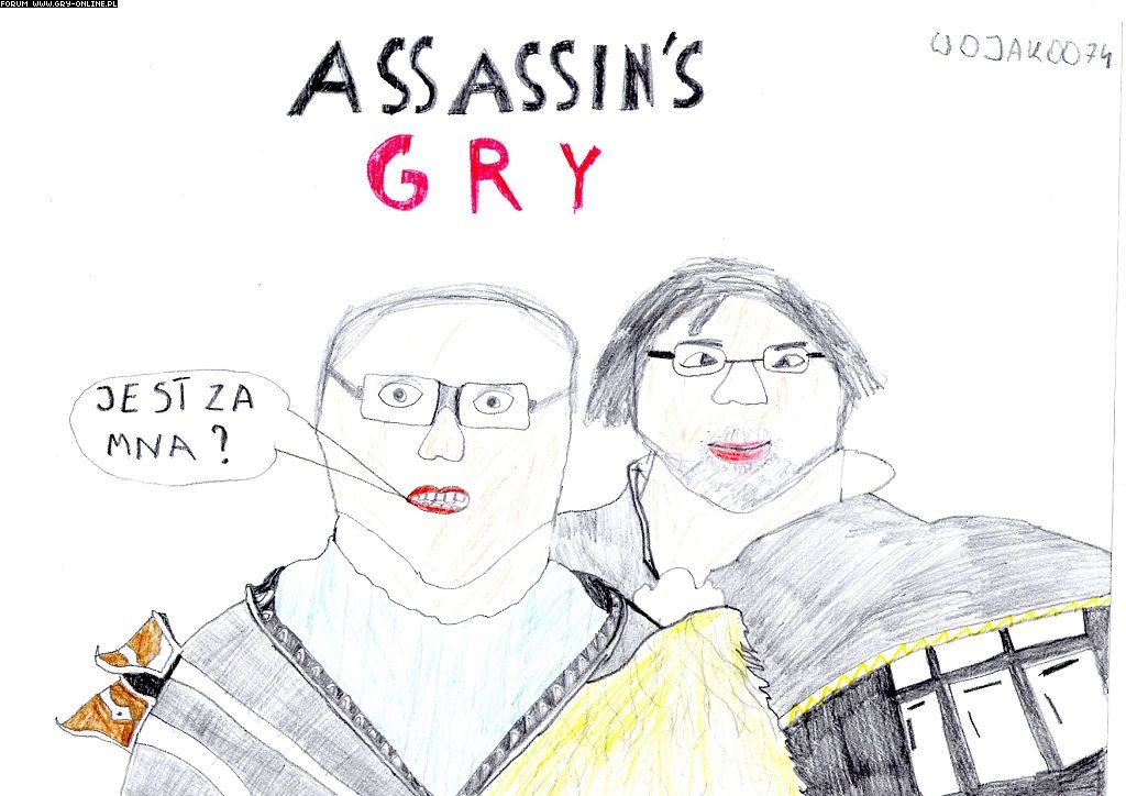Jak mają być assasyni no to może ja wrzucę pierwszą pracę z najsławniejszymi assasynami naszego kraju mianowicie zabójcami królów z Wiedźmina ;) Krzysiek może poczuć się dumny bo jest tutaj przedstawiony jako zabójca Foltesta i Demawenda ;D Przechytrzyć Geralta z Rivii to niecodzienne osiągnięcie ;)
